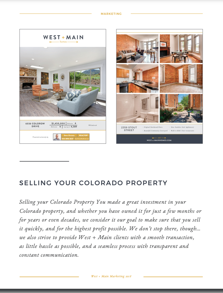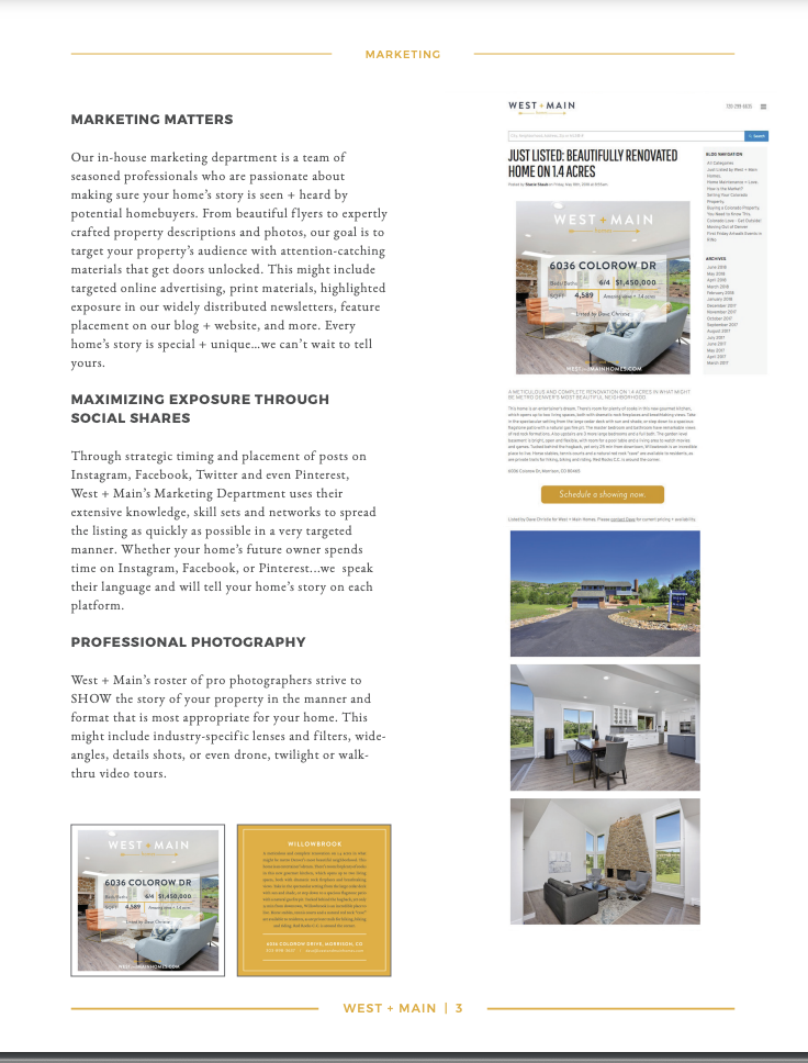 TRADITIONAL MARKETING · Large professionally installed yard “for sale” sign, property website, online virtual property tour, custom flyers, professionally printed announcement cards mailed to your neighborhood, feature cards and neighborhood highlights displayed in your home during showings, and a feature in West + Main’s weekly newsletter that is distributed to hundreds of thousands of local real estate agents and potential buyers.